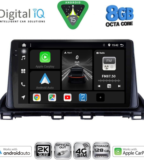 Το Apple CarPlay απαιτεί iPhone 5 ή νεότερο με την πιο πρόσφατη έκδοση του iOS.[/vc_column_text][/vc_column_inner][/vc_row_inner][/vc_column][vc_column width="1/2"][vc_row_inner][vc_column_inner width="1/4" padding_top="20px"][vc_single_image source="external_link" external_img_size="115x32" alignment="center" css_animation="zoomIn" custom_src="https://digitaliq.gr/wp-content/uploads/2024/10/Android_auto-Logo_certified_115.jpg"][/vc_column_inner][vc_column_inner width="3/4"][vc_custom_heading text="WIRELESS ANDROID AUTO" font_container="tag:h5|text_align:left" custom_heading_font_weight="600"][vc_custom_heading text="Licensed & Certified Android Auto" font_container="tag:h6|text_align:left" custom_heading_font_weight="500"][vc_column_text]Επεκτείνει την πλατφόρμα Android στο αυτοκίνητο με τρόπο που έχει σχεδιαστεί ειδικά για την οδήγηση και σας φέρνει αυτόματα χρήσιμες πληροφορίες και τις οργανώνει σε απλές κάρτες που εμφανίζονται ακριβώς όταν τις χρειάζονται. Έχει σχεδιαστεί για να ελαχιστοποιεί την απόσπαση της προσοχής, ώστε να μπορείτε να παραμένετε συγκεντρωμένοι στο δρόμο μπροστά σας.