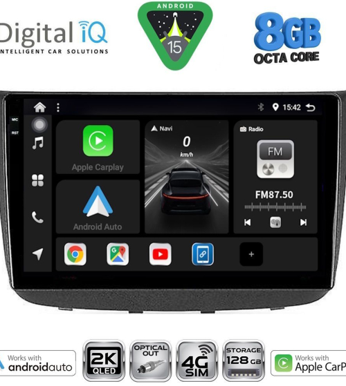Το Apple CarPlay απαιτεί iPhone 5 ή νεότερο με την πιο πρόσφατη έκδοση του iOS.[/vc_column_text][/vc_column_inner][/vc_row_inner][/vc_column][vc_column width="1/2"][vc_row_inner][vc_column_inner width="1/4" padding_top="20px"][vc_single_image source="external_link" external_img_size="115x32" alignment="center" css_animation="zoomIn" custom_src="https://digitaliq.gr/wp-content/uploads/2024/10/Android_auto-Logo_certified_115.jpg"][/vc_column_inner][vc_column_inner width="3/4"][vc_custom_heading text="WIRELESS ANDROID AUTO" font_container="tag:h5|text_align:left" custom_heading_font_weight="600"][vc_custom_heading text="Licensed & Certified Android Auto" font_container="tag:h6|text_align:left" custom_heading_font_weight="500"][vc_column_text]Επεκτείνει την πλατφόρμα Android στο αυτοκίνητο με τρόπο που έχει σχεδιαστεί ειδικά για την οδήγηση και σας φέρνει αυτόματα χρήσιμες πληροφορίες και τις οργανώνει σε απλές κάρτες που εμφανίζονται ακριβώς όταν τις χρειάζονται. Έχει σχεδιαστεί για να ελαχιστοποιεί την απόσπαση της προσοχής, ώστε να μπορείτε να παραμένετε συγκεντρωμένοι στο δρόμο μπροστά σας.