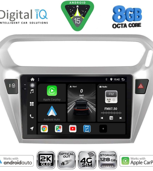 Το Apple CarPlay απαιτεί iPhone 5 ή νεότερο με την πιο πρόσφατη έκδοση του iOS.[/vc_column_text][/vc_column_inner][/vc_row_inner][/vc_column][vc_column width="1/2"][vc_row_inner][vc_column_inner width="1/4" padding_top="20px"][vc_single_image source="external_link" external_img_size="115x32" alignment="center" css_animation="zoomIn" custom_src="https://digitaliq.gr/wp-content/uploads/2024/10/Android_auto-Logo_certified_115.jpg"][/vc_column_inner][vc_column_inner width="3/4"][vc_custom_heading text="WIRELESS ANDROID AUTO" font_container="tag:h5|text_align:left" custom_heading_font_weight="600"][vc_custom_heading text="Licensed & Certified Android Auto" font_container="tag:h6|text_align:left" custom_heading_font_weight="500"][vc_column_text]Επεκτείνει την πλατφόρμα Android στο αυτοκίνητο με τρόπο που έχει σχεδιαστεί ειδικά για την οδήγηση και σας φέρνει αυτόματα χρήσιμες πληροφορίες και τις οργανώνει σε απλές κάρτες που εμφανίζονται ακριβώς όταν τις χρειάζονται. Έχει σχεδιαστεί για να ελαχιστοποιεί την απόσπαση της προσοχής, ώστε να μπορείτε να παραμένετε συγκεντρωμένοι στο δρόμο μπροστά σας.