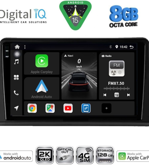 Το Apple CarPlay απαιτεί iPhone 5 ή νεότερο με την πιο πρόσφατη έκδοση του iOS.[/vc_column_text][/vc_column_inner][/vc_row_inner][/vc_column][vc_column width="1/2"][vc_row_inner][vc_column_inner width="1/4" padding_top="20px"][vc_single_image source="external_link" external_img_size="115x32" alignment="center" css_animation="zoomIn" custom_src="https://digitaliq.gr/wp-content/uploads/2024/10/Android_auto-Logo_certified_115.jpg"][/vc_column_inner][vc_column_inner width="3/4"][vc_custom_heading text="WIRELESS ANDROID AUTO" font_container="tag:h5|text_align:left" custom_heading_font_weight="600"][vc_custom_heading text="Licensed & Certified Android Auto" font_container="tag:h6|text_align:left" custom_heading_font_weight="500"][vc_column_text]Επεκτείνει την πλατφόρμα Android στο αυτοκίνητο με τρόπο που έχει σχεδιαστεί ειδικά για την οδήγηση και σας φέρνει αυτόματα χρήσιμες πληροφορίες και τις οργανώνει σε απλές κάρτες που εμφανίζονται ακριβώς όταν τις χρειάζονται. Έχει σχεδιαστεί για να ελαχιστοποιεί την απόσπαση της προσοχής, ώστε να μπορείτε να παραμένετε συγκεντρωμένοι στο δρόμο μπροστά σας.