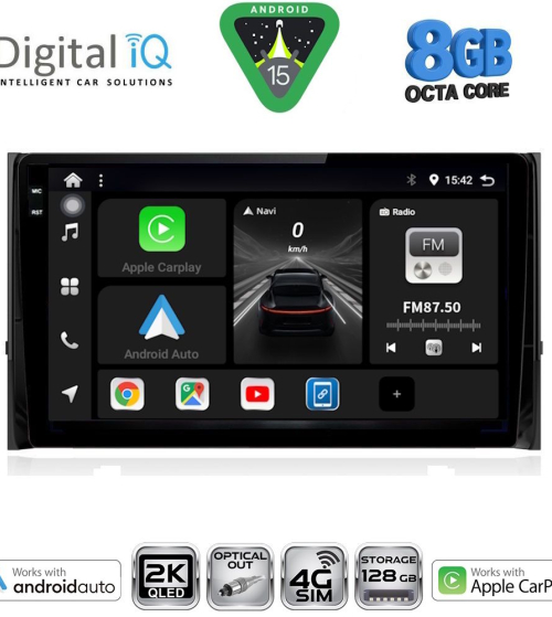 Το Apple CarPlay απαιτεί iPhone 5 ή νεότερο με την πιο πρόσφατη έκδοση του iOS.[/vc_column_text][/vc_column_inner][/vc_row_inner][/vc_column][vc_column width="1/2"][vc_row_inner][vc_column_inner width="1/4" padding_top="20px"][vc_single_image source="external_link" external_img_size="115x32" alignment="center" css_animation="zoomIn" custom_src="https://digitaliq.gr/wp-content/uploads/2024/10/Android_auto-Logo_certified_115.jpg"][/vc_column_inner][vc_column_inner width="3/4"][vc_custom_heading text="WIRELESS ANDROID AUTO" font_container="tag:h5|text_align:left" custom_heading_font_weight="600"][vc_custom_heading text="Licensed & Certified Android Auto" font_container="tag:h6|text_align:left" custom_heading_font_weight="500"][vc_column_text]Επεκτείνει την πλατφόρμα Android στο αυτοκίνητο με τρόπο που έχει σχεδιαστεί ειδικά για την οδήγηση και σας φέρνει αυτόματα χρήσιμες πληροφορίες και τις οργανώνει σε απλές κάρτες που εμφανίζονται ακριβώς όταν τις χρειάζονται. Έχει σχεδιαστεί για να ελαχιστοποιεί την απόσπαση της προσοχής, ώστε να μπορείτε να παραμένετε συγκεντρωμένοι στο δρόμο μπροστά σας.