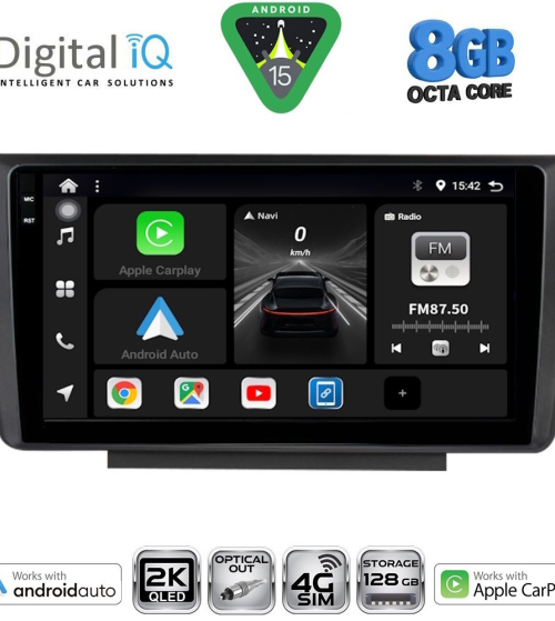 Το Apple CarPlay απαιτεί iPhone 5 ή νεότερο με την πιο πρόσφατη έκδοση του iOS.[/vc_column_text][/vc_column_inner][/vc_row_inner][/vc_column][vc_column width="1/2"][vc_row_inner][vc_column_inner width="1/4" padding_top="20px"][vc_single_image source="external_link" external_img_size="115x32" alignment="center" css_animation="zoomIn" custom_src="https://digitaliq.gr/wp-content/uploads/2024/10/Android_auto-Logo_certified_115.jpg"][/vc_column_inner][vc_column_inner width="3/4"][vc_custom_heading text="WIRELESS ANDROID AUTO" font_container="tag:h5|text_align:left" custom_heading_font_weight="600"][vc_custom_heading text="Licensed & Certified Android Auto" font_container="tag:h6|text_align:left" custom_heading_font_weight="500"][vc_column_text]Επεκτείνει την πλατφόρμα Android στο αυτοκίνητο με τρόπο που έχει σχεδιαστεί ειδικά για την οδήγηση και σας φέρνει αυτόματα χρήσιμες πληροφορίες και τις οργανώνει σε απλές κάρτες που εμφανίζονται ακριβώς όταν τις χρειάζονται. Έχει σχεδιαστεί για να ελαχιστοποιεί την απόσπαση της προσοχής, ώστε να μπορείτε να παραμένετε συγκεντρωμένοι στο δρόμο μπροστά σας.
