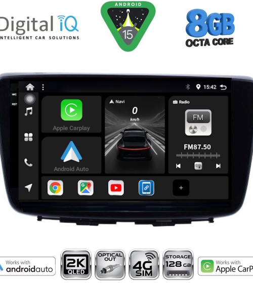 Το Apple CarPlay απαιτεί iPhone 5 ή νεότερο με την πιο πρόσφατη έκδοση του iOS.[/vc_column_text][/vc_column_inner][/vc_row_inner][/vc_column][vc_column width="1/2"][vc_row_inner][vc_column_inner width="1/4" padding_top="20px"][vc_single_image source="external_link" external_img_size="115x32" alignment="center" css_animation="zoomIn" custom_src="https://digitaliq.gr/wp-content/uploads/2024/10/Android_auto-Logo_certified_115.jpg"][/vc_column_inner][vc_column_inner width="3/4"][vc_custom_heading text="WIRELESS ANDROID AUTO" font_container="tag:h5|text_align:left" custom_heading_font_weight="600"][vc_custom_heading text="Licensed & Certified Android Auto" font_container="tag:h6|text_align:left" custom_heading_font_weight="500"][vc_column_text]Επεκτείνει την πλατφόρμα Android στο αυτοκίνητο με τρόπο που έχει σχεδιαστεί ειδικά για την οδήγηση και σας φέρνει αυτόματα χρήσιμες πληροφορίες και τις οργανώνει σε απλές κάρτες που εμφανίζονται ακριβώς όταν τις χρειάζονται. Έχει σχεδιαστεί για να ελαχιστοποιεί την απόσπαση της προσοχής, ώστε να μπορείτε να παραμένετε συγκεντρωμένοι στο δρόμο μπροστά σας.
