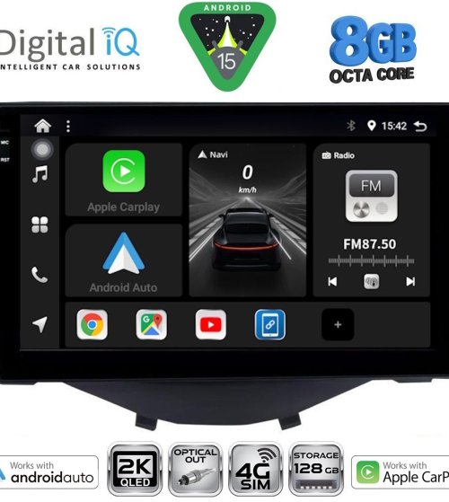 Το Apple CarPlay απαιτεί iPhone 5 ή νεότερο με την πιο πρόσφατη έκδοση του iOS.[/vc_column_text][/vc_column_inner][/vc_row_inner][/vc_column][vc_column width="1/2"][vc_row_inner][vc_column_inner width="1/4" padding_top="20px"][vc_single_image source="external_link" external_img_size="115x32" alignment="center" css_animation="zoomIn" custom_src="https://digitaliq.gr/wp-content/uploads/2024/10/Android_auto-Logo_certified_115.jpg"][/vc_column_inner][vc_column_inner width="3/4"][vc_custom_heading text="WIRELESS ANDROID AUTO" font_container="tag:h5|text_align:left" custom_heading_font_weight="600"][vc_custom_heading text="Licensed & Certified Android Auto" font_container="tag:h6|text_align:left" custom_heading_font_weight="500"][vc_column_text]Επεκτείνει την πλατφόρμα Android στο αυτοκίνητο με τρόπο που έχει σχεδιαστεί ειδικά για την οδήγηση και σας φέρνει αυτόματα χρήσιμες πληροφορίες και τις οργανώνει σε απλές κάρτες που εμφανίζονται ακριβώς όταν τις χρειάζονται. Έχει σχεδιαστεί για να ελαχιστοποιεί την απόσπαση της προσοχής, ώστε να μπορείτε να παραμένετε συγκεντρωμένοι στο δρόμο μπροστά σας.