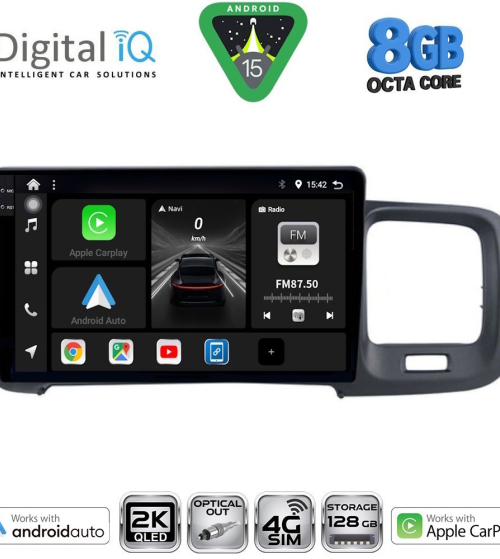 Το Apple CarPlay απαιτεί iPhone 5 ή νεότερο με την πιο πρόσφατη έκδοση του iOS.[/vc_column_text][/vc_column_inner][/vc_row_inner][/vc_column][vc_column width="1/2"][vc_row_inner][vc_column_inner width="1/4" padding_top="20px"][vc_single_image source="external_link" external_img_size="115x32" alignment="center" css_animation="zoomIn" custom_src="https://digitaliq.gr/wp-content/uploads/2024/10/Android_auto-Logo_certified_115.jpg"][/vc_column_inner][vc_column_inner width="3/4"][vc_custom_heading text="WIRELESS ANDROID AUTO" font_container="tag:h5|text_align:left" custom_heading_font_weight="600"][vc_custom_heading text="Licensed & Certified Android Auto" font_container="tag:h6|text_align:left" custom_heading_font_weight="500"][vc_column_text]Επεκτείνει την πλατφόρμα Android στο αυτοκίνητο με τρόπο που έχει σχεδιαστεί ειδικά για την οδήγηση και σας φέρνει αυτόματα χρήσιμες πληροφορίες και τις οργανώνει σε απλές κάρτες που εμφανίζονται ακριβώς όταν τις χρειάζονται. Έχει σχεδιαστεί για να ελαχιστοποιεί την απόσπαση της προσοχής, ώστε να μπορείτε να παραμένετε συγκεντρωμένοι στο δρόμο μπροστά σας.