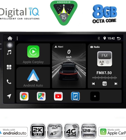 Το Apple CarPlay απαιτεί iPhone 5 ή νεότερο με την πιο πρόσφατη έκδοση του iOS.[/vc_column_text][/vc_column_inner][/vc_row_inner][/vc_column][vc_column width="1/2"][vc_row_inner][vc_column_inner width="1/4" padding_top="20px"][vc_single_image source="external_link" external_img_size="115x32" alignment="center" css_animation="zoomIn" custom_src="https://digitaliq.gr/wp-content/uploads/2024/10/Android_auto-Logo_certified_115.jpg"][/vc_column_inner][vc_column_inner width="3/4"][vc_custom_heading text="WIRELESS ANDROID AUTO" font_container="tag:h5|text_align:left" custom_heading_font_weight="600"][vc_custom_heading text="Licensed & Certified Android Auto" font_container="tag:h6|text_align:left" custom_heading_font_weight="500"][vc_column_text]Επεκτείνει την πλατφόρμα Android στο αυτοκίνητο με τρόπο που έχει σχεδιαστεί ειδικά για την οδήγηση και σας φέρνει αυτόματα χρήσιμες πληροφορίες και τις οργανώνει σε απλές κάρτες που εμφανίζονται ακριβώς όταν τις χρειάζονται. Έχει σχεδιαστεί για να ελαχιστοποιεί την απόσπαση της προσοχής, ώστε να μπορείτε να παραμένετε συγκεντρωμένοι στο δρόμο μπροστά σας.