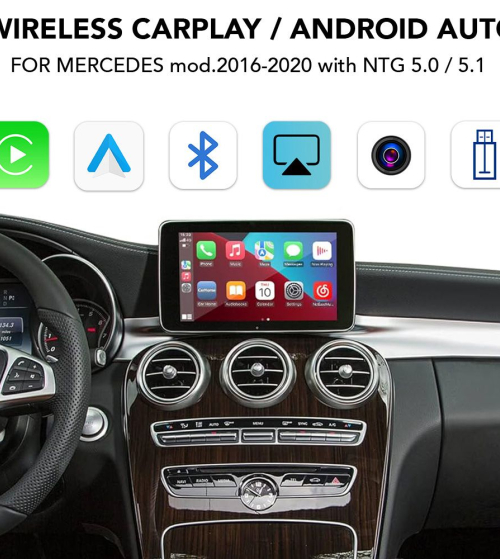 συμβατό με εργοστασιακό σύστημα NTG 5.0 / 5.1 και οθόνη 7" - 8" - 8.4" & 12.3" (S Class), για αυτοκίνητα Mercedes 2014-2018, διατηρώντας όλες τις εργοστασιακές ενδείξεις του ηχοσυστήματος στην οθόνη του αυτοκινήτου με πλήρη ενσωμάτωση των εργοστασιακών χειριστήριων του αυτοκινήτου.