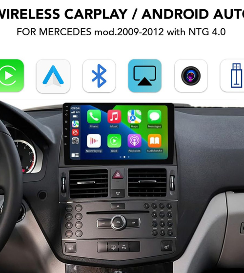 συμβατό με εργοστασιακό σύστημα NTG 4.0 και οθόνη 5.8" - 7", για αυτοκίνητα Mercedes 2009-2012, διατηρώντας όλες τις εργοστασιακές ενδείξεις του ηχοσυστήματος στην οθόνη του αυτοκινήτου με πλήρη ενσωμάτωση των εργοστασιακών χειριστήριων του αυτοκινήτου.