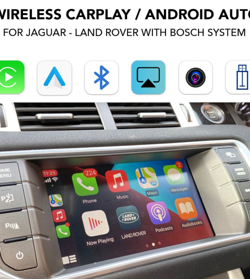 για αυτοκίνητα Jaguar - Land Rover 2011-2017 με εργοστασιακό σύστημα Bosch, συμβατό με οθόνες 7 - 8 ιντσών, διατηρώντας όλες τις εργοστασιακές ενδείξεις του ηχοσυστήματος στην οθόνη του αυτοκινήτου με πλήρη ενσωμάτωση των εργοστασιακών χειριστήριων του αυτοκινήτου.