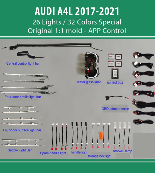 DIQ AMBIENT AUDI A4L LASER (8W) mod. 2017-2021 (Digital iQ Ambient Light for Audi A4L mod. 2017-2021, 26 Lights)