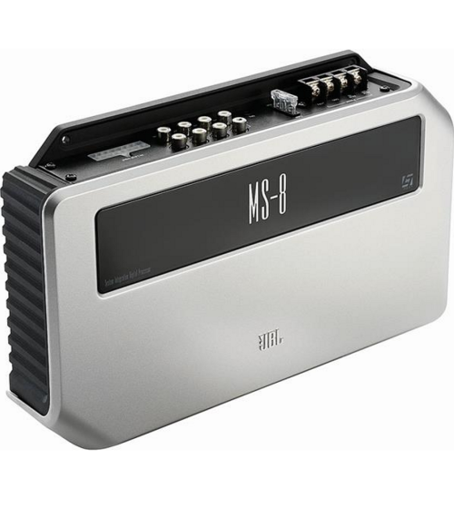 The JBL® MS-8 system integration digital processor is a giant leap forward in the pursuit of making upgrades to car audio systems easy. No longer does getting great sound in today’s cars have to be labor-intensive and complicated. This elegant, single-chassis solution, based on digital signal processing (DSP), tastefully integrates with both factory-installed and aftermarket audio systems. It provides both speaker and pre-amp level inputs (up to eight channels to mix and match). Its powerful, menu-driven configuration allows the sophisticated DSP to learn your vehicle’s audio-signal characteristics and acoustic response, and provide a fast and highly effective automated setup that includes Logic 7® audio processing. What’s more, it can analyze and save multiple listening positions. Once it completes making acoustic and signal corrections, it adds precision active crossovers, a 31-band (1/3-octave) equalizer and other user-accessible features for easy adjustment. The unit has its own onboard eight-channel power for connection directly to speakers or pre-amp level outputs to connect more powerful outboard amplifiers. What used to take professional-installation technicians hours of tuning and tweaking now occurs in a matter of minutes.