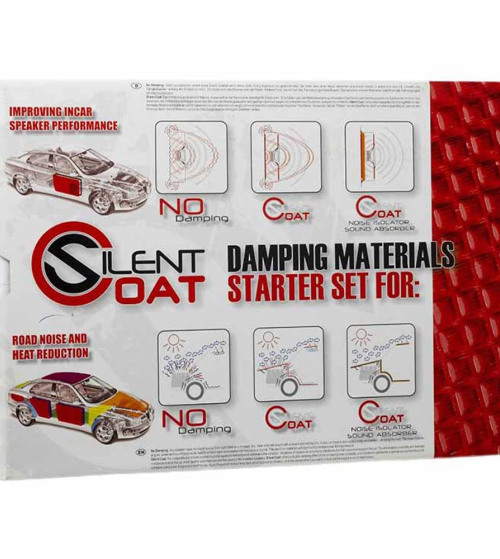 Σετ εκκίνησης Silent Coat – 4 φύλλα απαλοιφής ήχου Silent Coat, ένα πάνελ Isolator 4 και ένα πάνελ Sound Absorber. Αυτό το πακέτο είναι μια οικονομική εισαγωγή στη σειρά Silent Coat και είναι επίσης τέλειο για τη βελτίωση των κρίσιμων περιοχών γύρω από τις πόρτες και τα ηχεία του αυτοκινήτου σας για εξαιρετική αναβάθμιση.